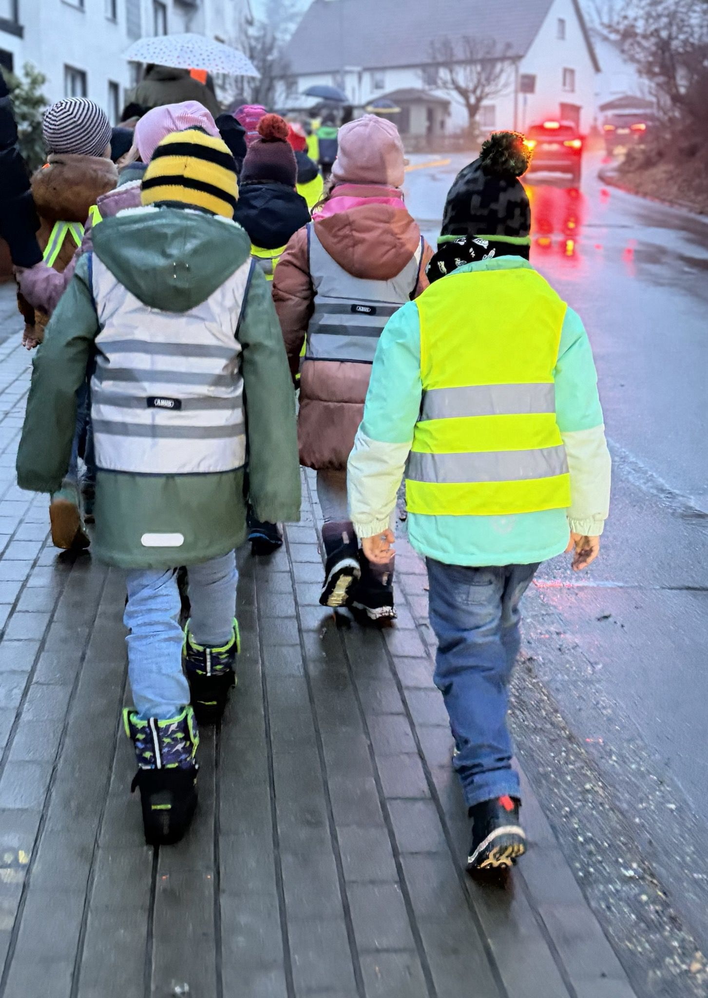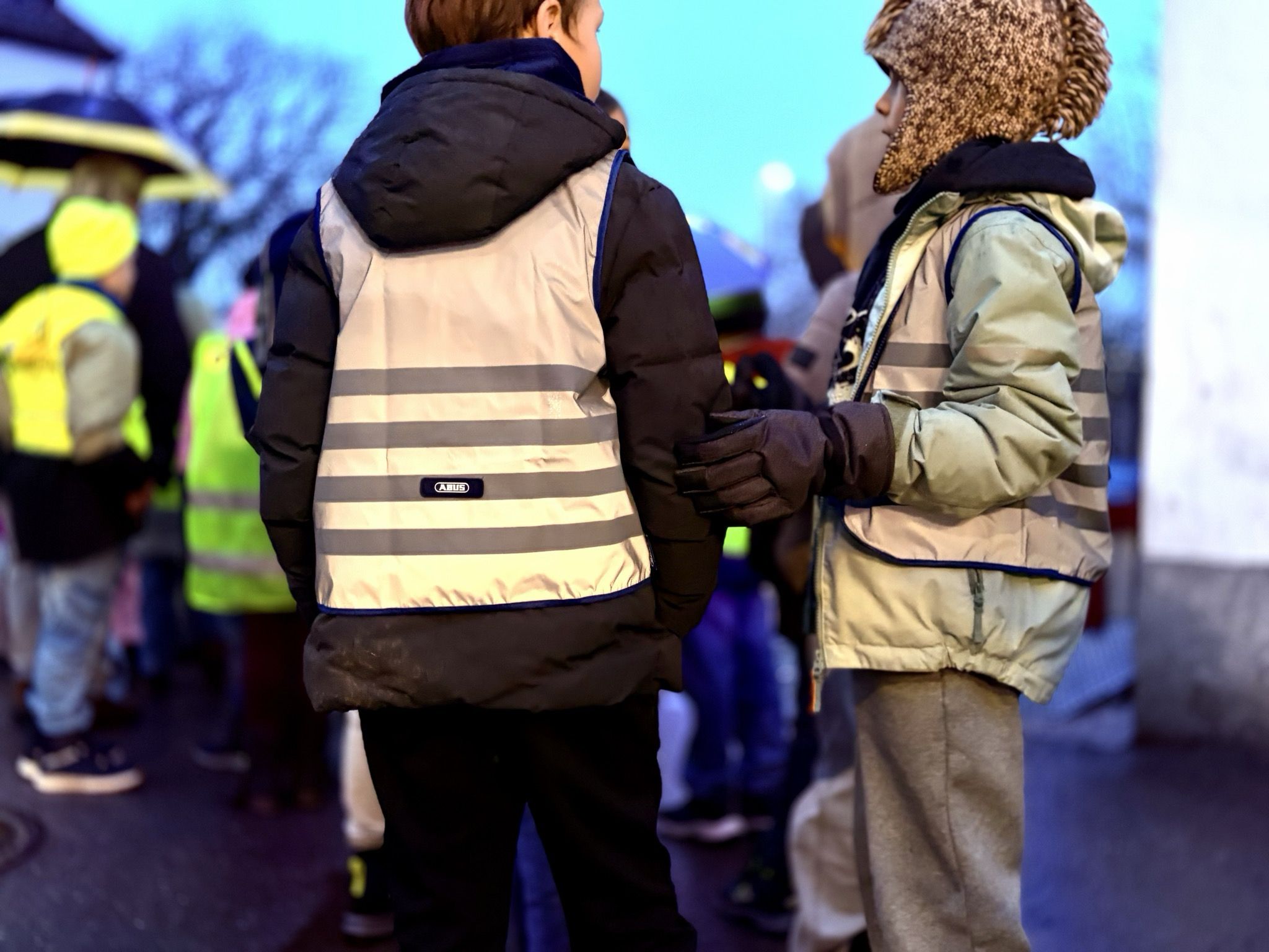 Kinder auch an dunklen, kalten Wintermorgen gut geschützt unterwegs